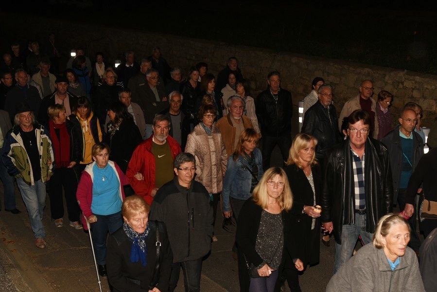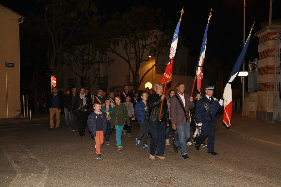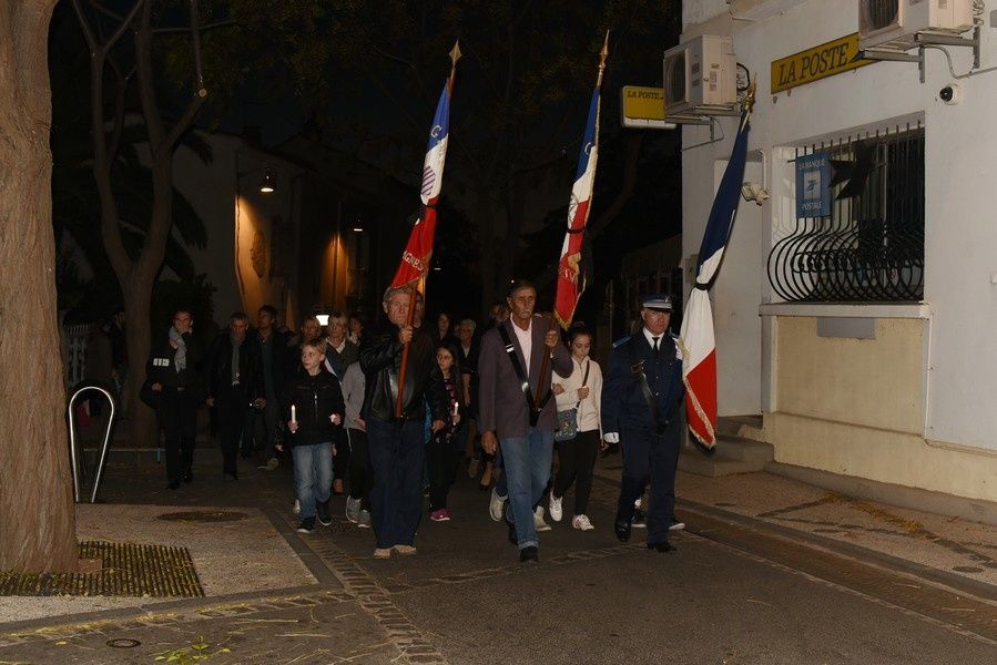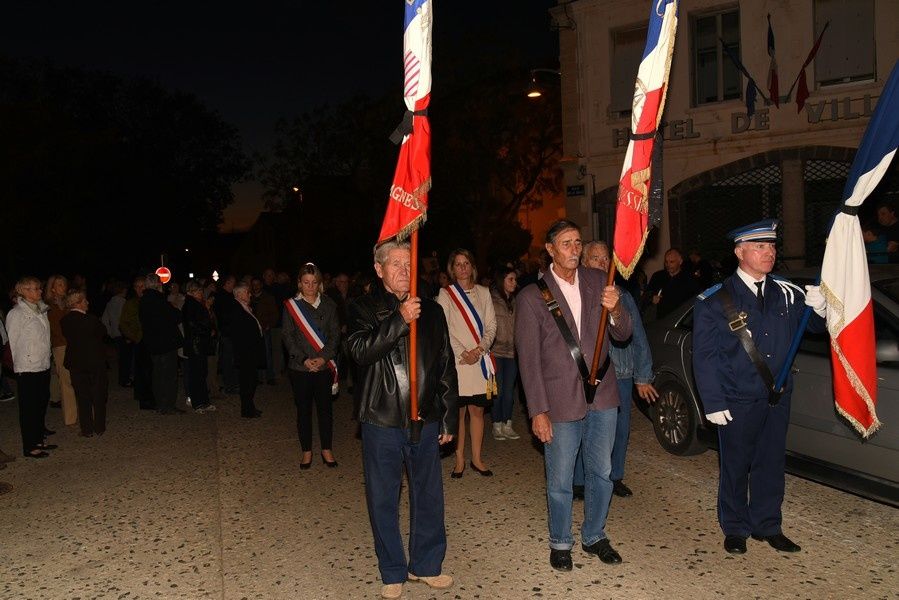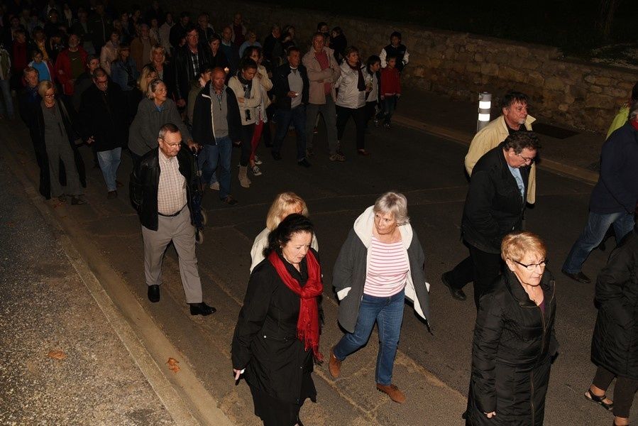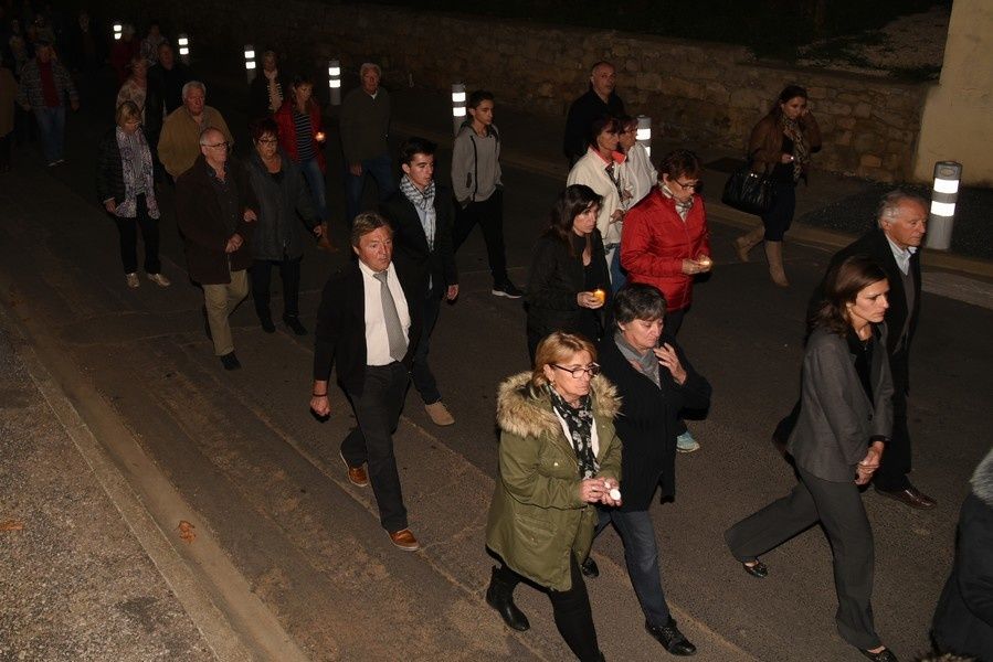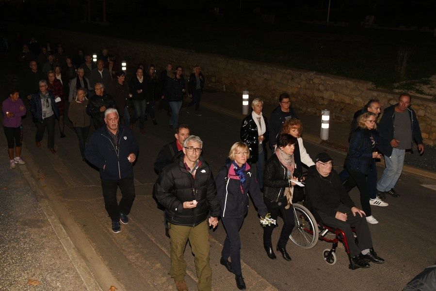A 18 h précises, les cloches ont sonné le glas, puis le très long cortège s’est élancé pour une marche silencieuse par les avenues Jean Moulin et de l'égalité jusqu'au monument aux Morts.