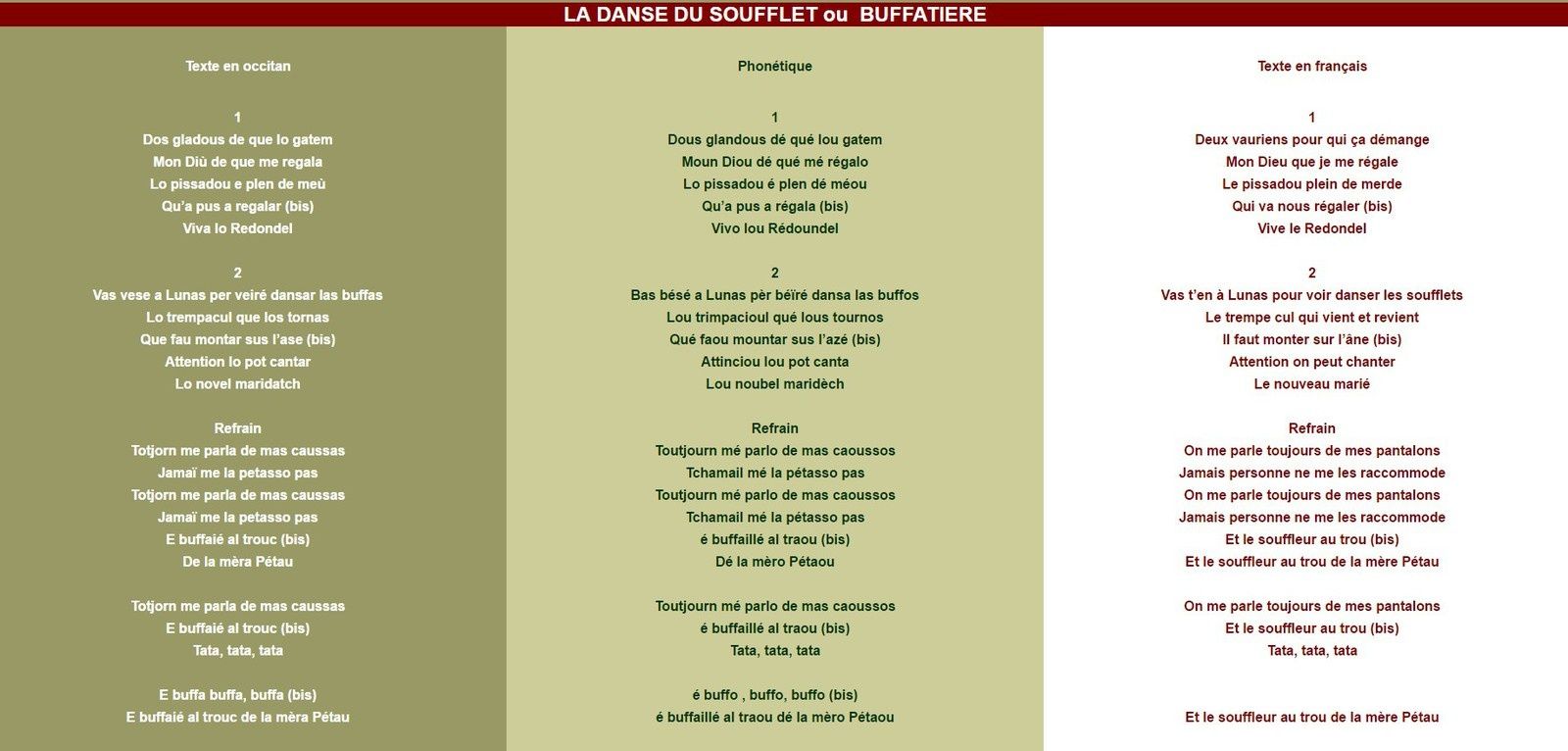 La danso das buffets ", ou danse du soufflet, est pour certains auteurs la danse de la corporation des bouchers ?.